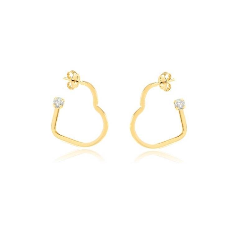 Brinco de argola coração com ponto de luz em zircônia.Os brincos são carro chefe na revenda de semijoias. Toda revendedora já sabe que apostar em variedade de modelos e tamanhos garante sucesso na hora da venda. Compre no atacado e lucre vendendo semijoias direto de fábrica com 1 ano de garantia!