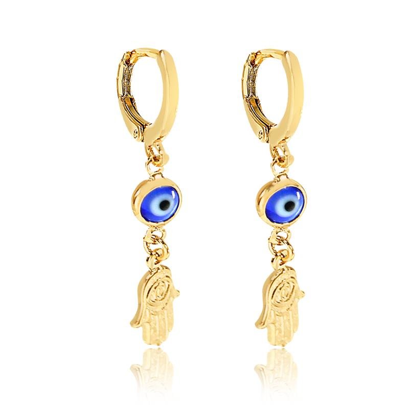 Brinco de argola redonda com pingentes mão de fátima e olho gego em resina.O brinco de argola com pingente de olho grego é maravilhoso! Além de proporcionar beleza ao look também traz consigo a proteção contra inveja e mau-olhado! Você revendedora não perca a oportunidade de encantar o seu mostruário os produtos da July Joias!