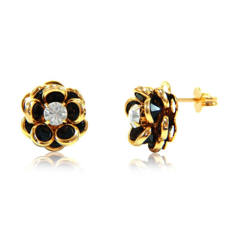 Brinco flor em camadas com ponto de luz em zircônia.Os brincos são peças vendáveis. Toda a revendedora de semijoias sabe que os brincos são os mais queridinhos de suas clientes. É por isso a importância de ter vários modelos.