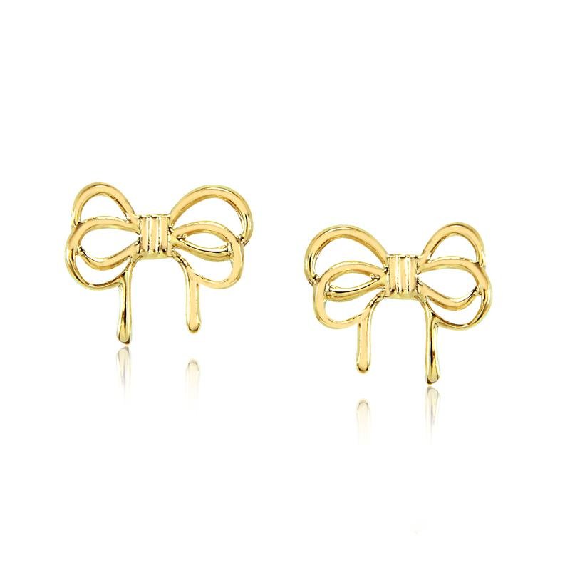 Brinco fixo laço vazado.Brincos pequenos e mais delicados são sempre peças curinga no mostruário, você revendedora precisa ter modelos variados para estar sempre encantando suas clientes com as semijoias da July Joias!