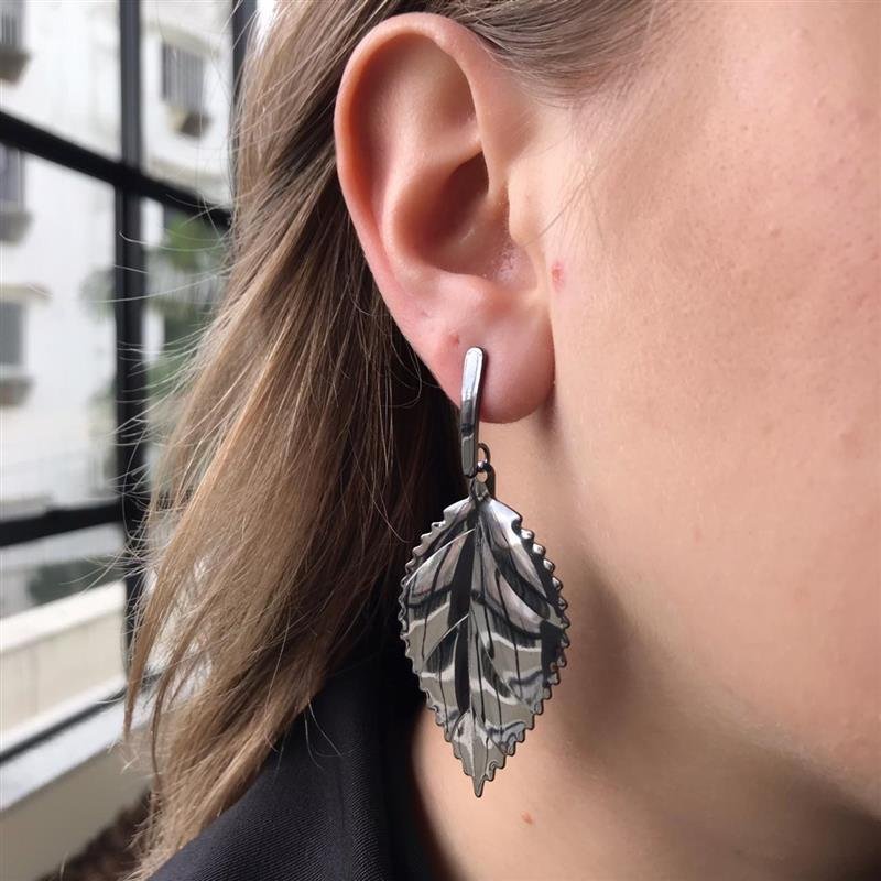 BRINCO PÊNDULO FOLHA RÓDIO NEGRO