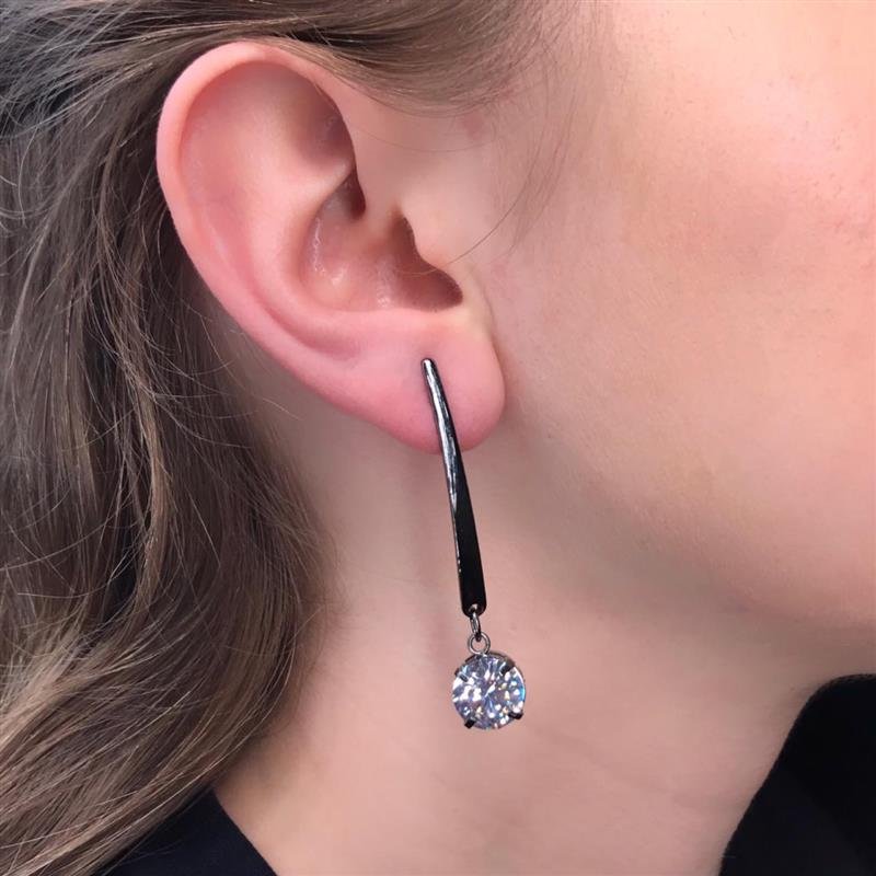 Brinco pêndulo com pedra redonda em zircônia.O brinco é um acessório que não pode faltar no seu look. É certamente uma peça fundamental para garantir elegância e charme. Independente da ocasião, o brinco é uma aposta certa para compor o visual e transmitir sua essência.