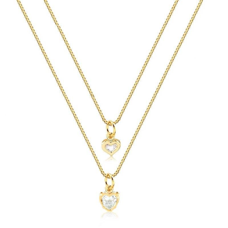 Gargantilha corrente veneziana dupla com dois pingentes de coração com pedra em zircônia.A gargantilha é uma peça que nunca sai de moda e sempre acrescenta um toque especial ao visual. Ela pode ser usada sozinha, para um look mais minimalista, ou combinada com outros colares para um efeito mais elaborado. Na hora de montar suas composições, lembre-se de considerar o estilo e a preferência de cada cliente. Algumas pessoas preferem peças mais delicadas, enquanto outras gostam de gargantilhas mais chamativas e cheias de detalhes. Ao comprar no atacado, você consegue garantir preços mais atrativos e aumentar ainda mais o seu lucro. Além disso, ao adquirir semijoias direto de fábrica com garantia de um ano, você oferece mais segurança e confiança para seus clientes. Invista em gargantilhas e outras semijoias de qualidade para atrair mais clientes e aumentar suas vendas. Com criatividade e bom gosto, você pode conquistar um público fiel e se destacar no mercado de revenda de acessórios.