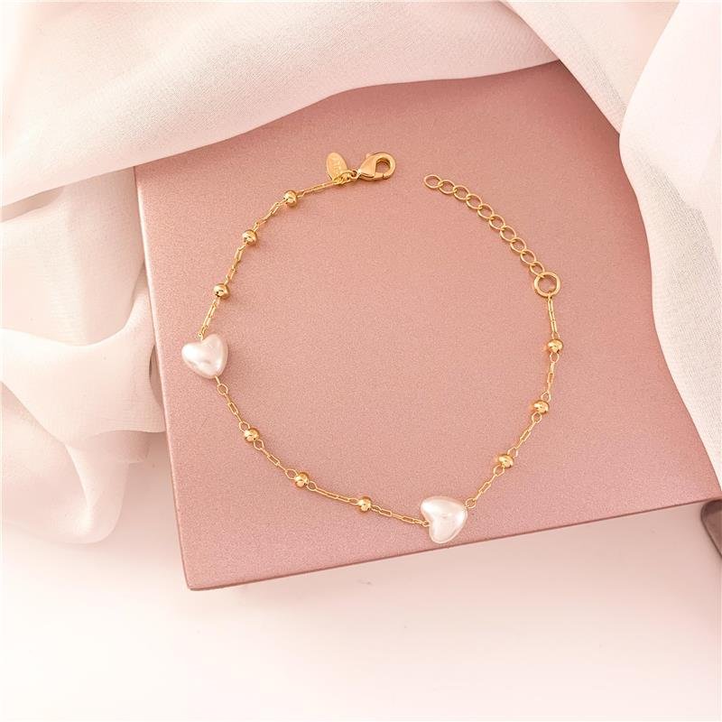 Pulseira elos bolinha coração em pérola.As pulseiras são produtos vendáveis, a facilidade de combinações faz desse acessório um destaque a mais na hora da composição do look. Aposte em ter variedade de modelos em seu mostruário de revendedora, criando mix despertando assim o desejo de seus clientes em ter mais de um modelo.
